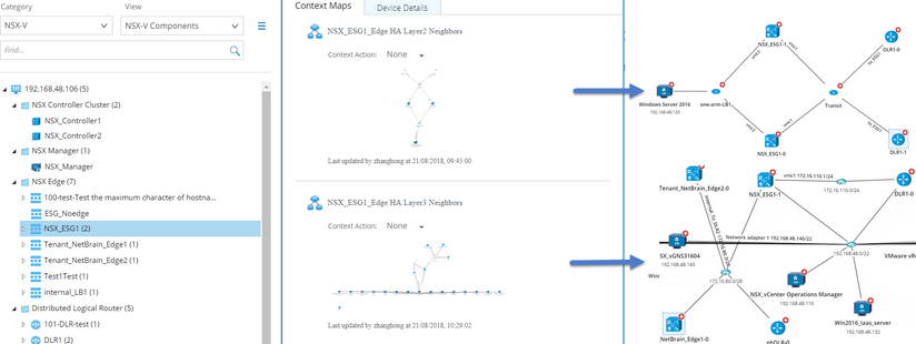 Every NSX-v node has its context maps, such as its L2 or L3 neighbor topology, and node details used to view its properties, interfaces and other information.