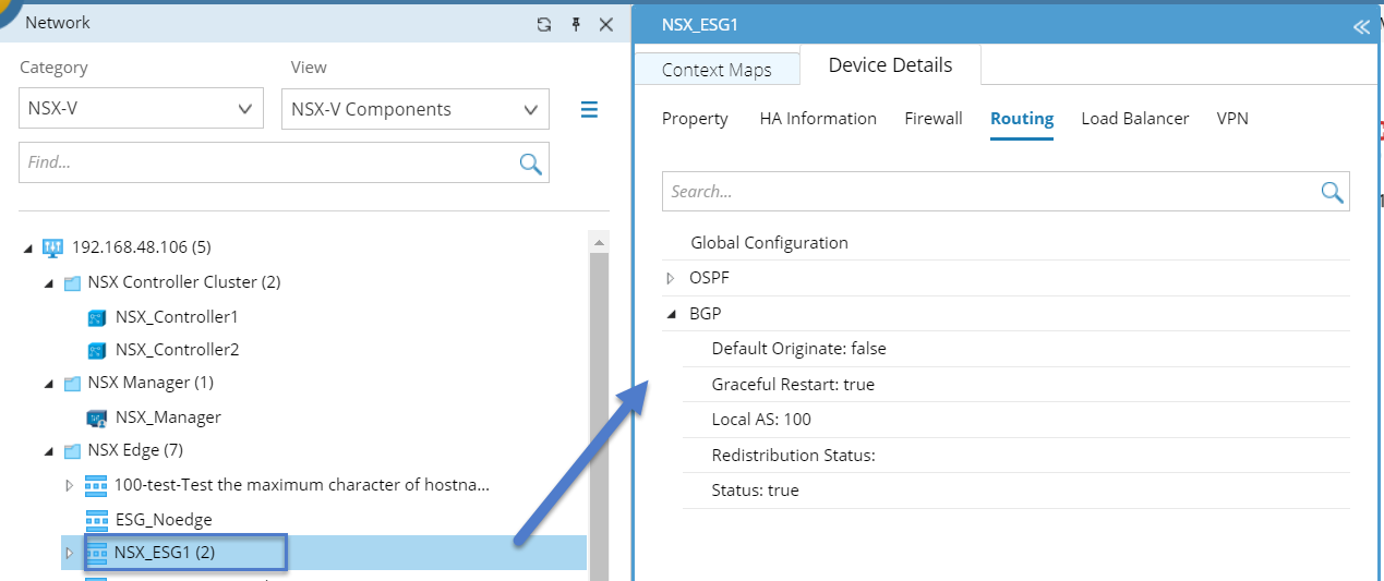 3.Click a specific HA device in the NSX Edge node to view its context maps and details.