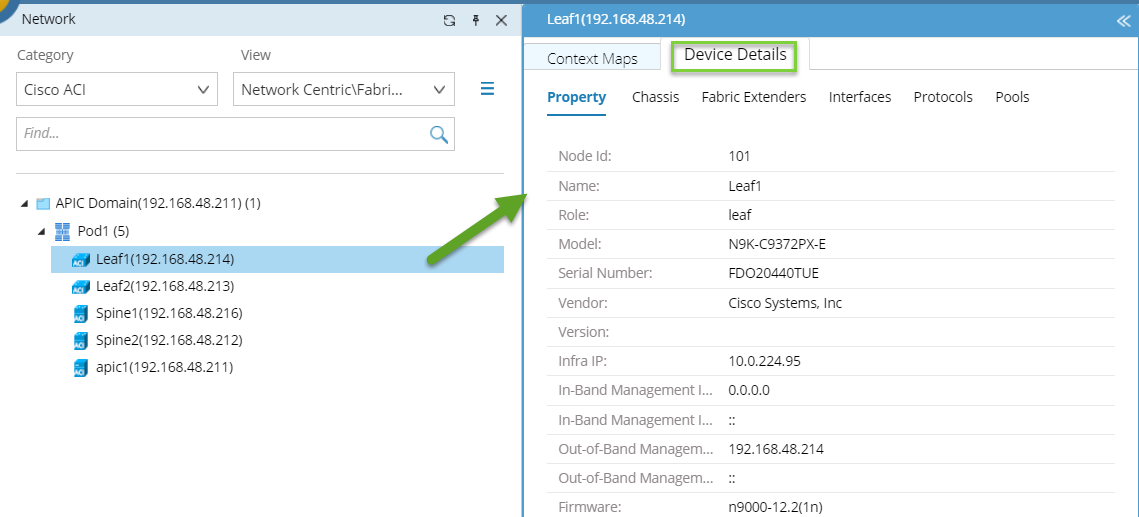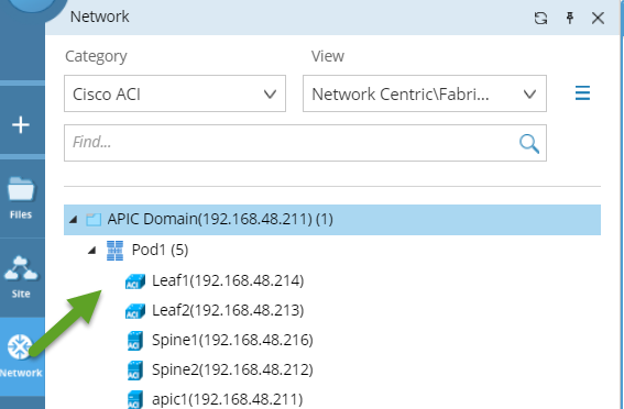 Tip: The network-centric view allows you to see what devices are part of the ACI fabric and how they connect to the rest of the network.
