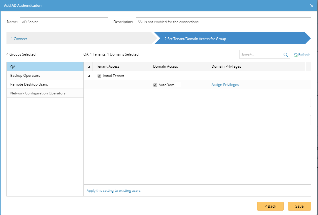 5)Assign domain access and more privileges to the users in the selected groups.