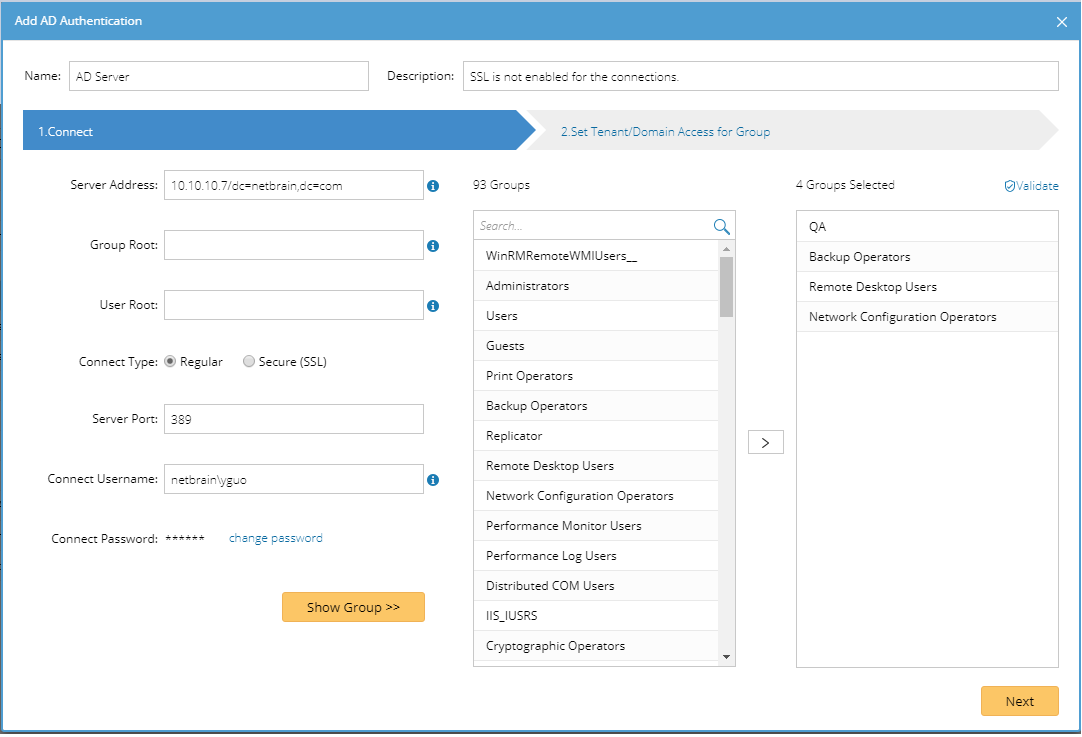 Tip: Click Validate to verify whether the selected groups still exist on the AD server. Click the