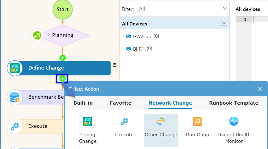 2.In the Select Action dialog, select Other Change on the Network Change tab.