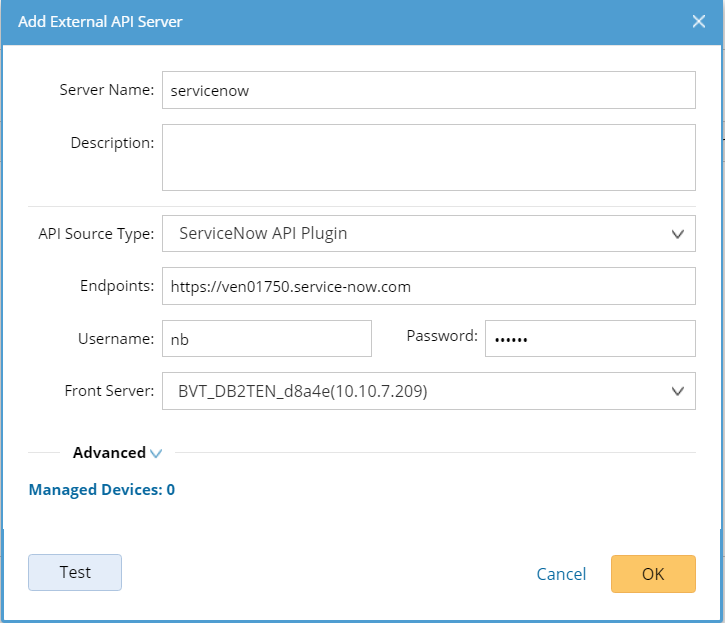 7.Enter the username and password to access the third-party API server.