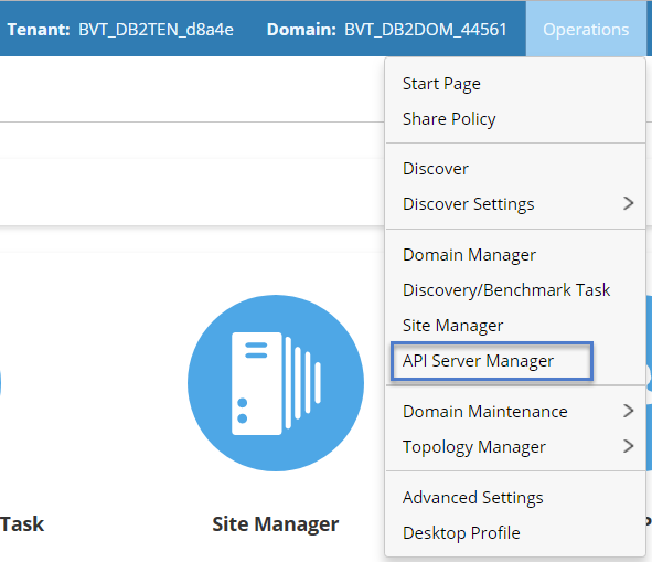 2.Click Operations from the quick access toolbar and select API Server Manager.