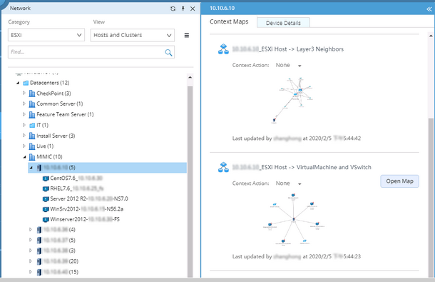 After discovering your vCenter network, you can visualize the network data on a map, such as topology and IP address. Besides, you can apply a data view template to visualize more information on the map.