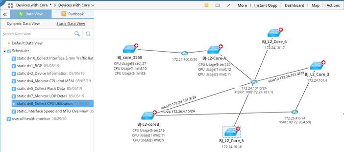 All devices on a map page are displayed in the default data view. You can apply a static data view to decode network design.