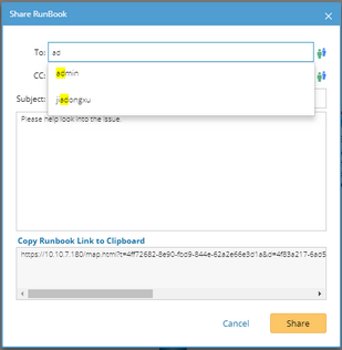 Tip: You can click Copy Runbook Link to Clipboard, and paste the link in any communication tools to share the runbook via the link.