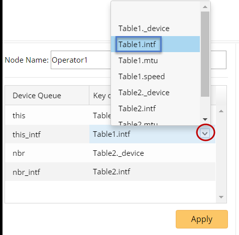 2.At the Neighbor Join node, adjust the matching keys of two tables based on the variable name in the Device Queue node. If a variable is incorrectly matched, point to the key and click the