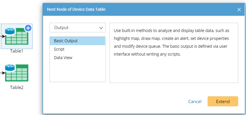 3.Extend a Basic Output node from the Table3 node and define the conditions to trigger the output.