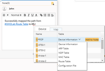 icon to add a note. To mention a device, enter # and further select a device asset. A link will be generated for other users to quickly access the required information.