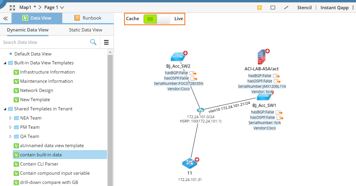 Tip: To pull live data in a data view, you can toggle the switch from Cache to Live.