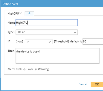 Tip: You can define multiple alerts for a variable. For example, define an error alert when the CPU usage exceeds 90.