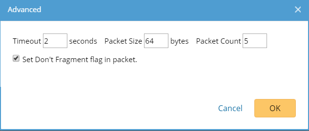 ▪Packet Count — specify the number of the ping packets to be sent.