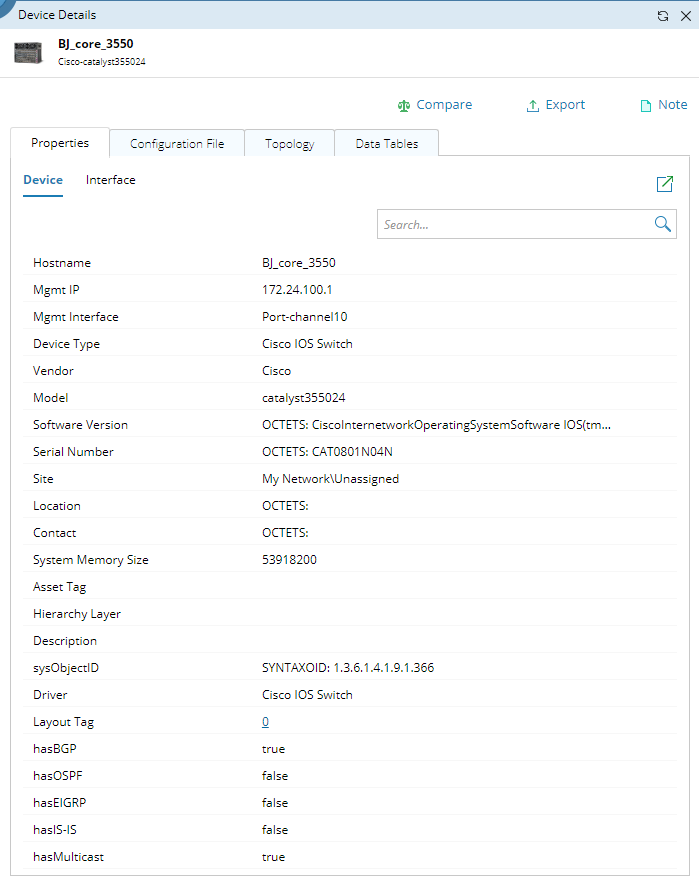 Both built-in and customized devices properties are stored in the Global Data Repository. You can browse, modify, and export device properties from the Device Details pane.