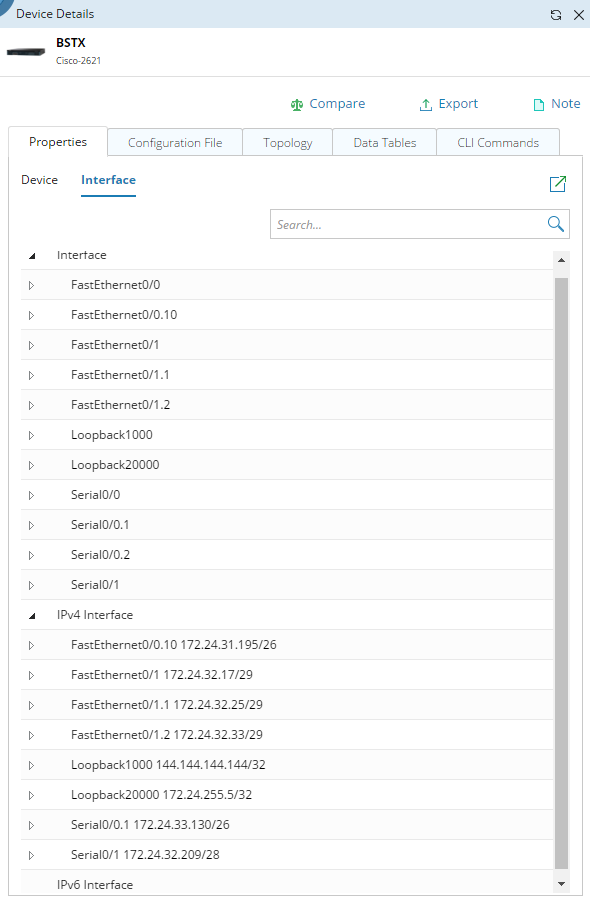 1.In the Device Details pane, select the Properties > Interface tab. The interface properties are listed by interface type.