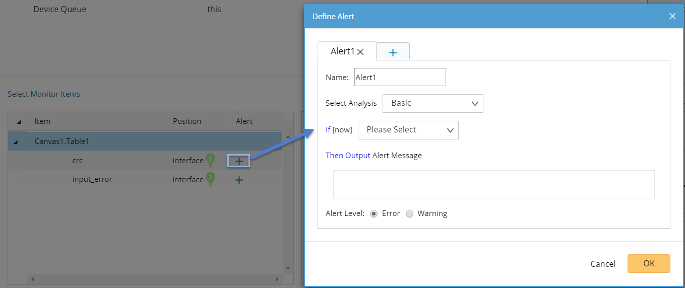 Example: Define an alert condition for the variable $input_error (interface input error).