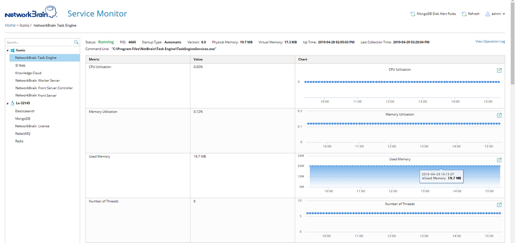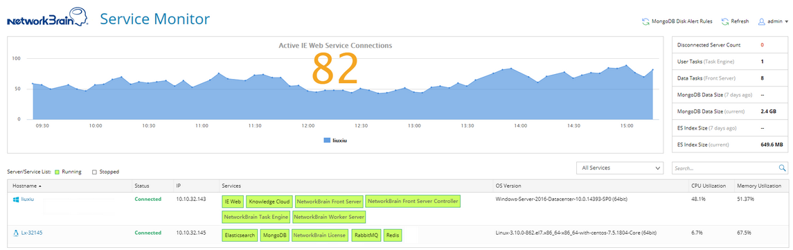 Note: The user account of the service monitor is different from the user account of the NetworkBrain IE system. The default username/password is admin/admin.