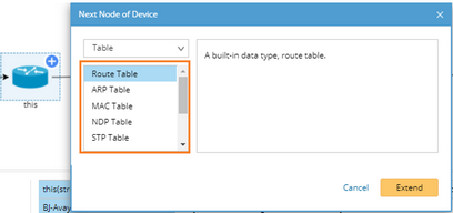 oSystem Data Table — built-in data types (including Route Table, ARP Table, MAC Table, NDP Table, STP Table, NCT Table), and only can be extended from a Command node. See Configuring system data table for more reference.