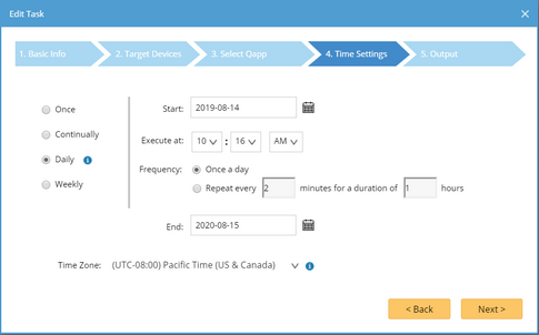 4)On the Time Settings tab, set a proper execution time and frequency. For example, set the frequency to Daily. Click Next.