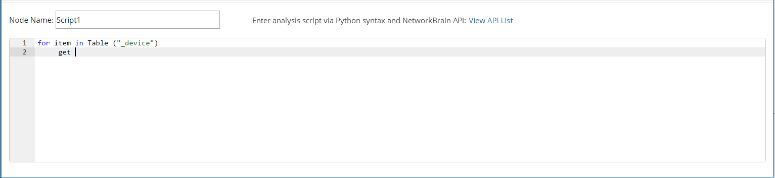 The Script node refers to writing your own Python scripts to analyze table data and call NetworkBrain APIs to output the results.