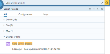 icon or press the Enter key on your keyboard to start searching. The search results are displayed under the Dashboard group with the matched keyword highlighted.