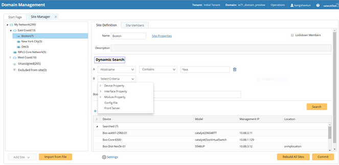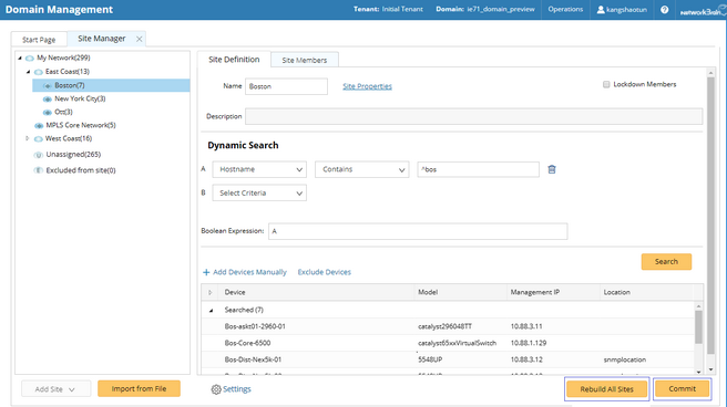 5.In the Site Manager, click Rebuild All Sites to rebuild the site topology. The Site Member pane opens automatically and lists the devices in the current site.
