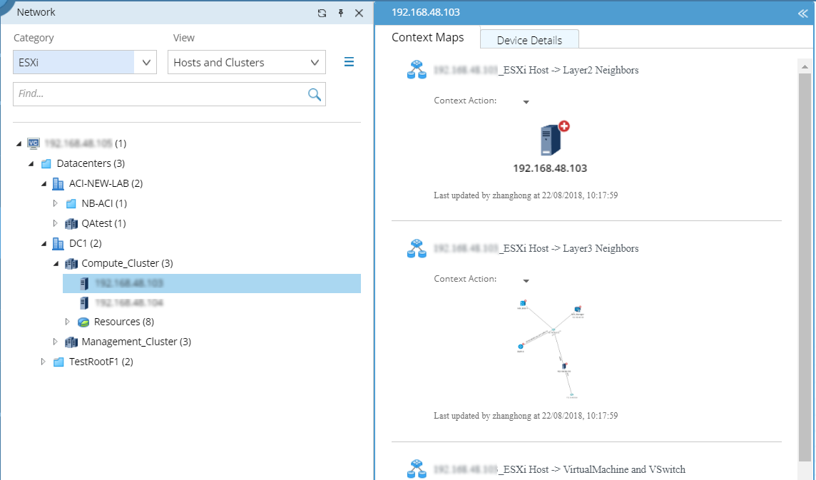 Tip: For more information about the vCenter context maps, see Context Maps of vCenter Nodes for details.