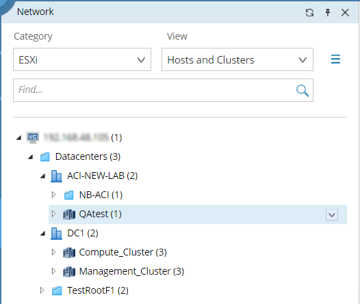 2.Select ESXi from the Category list, and then select Hosts and Clusters from the View list.