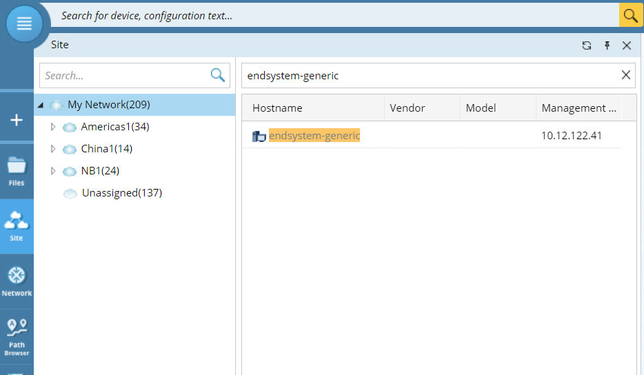 6.To find the added device, click Site on the taskbar, then input the device name endsystem-generic in the device search bar and press the Enter key on your keyboard.