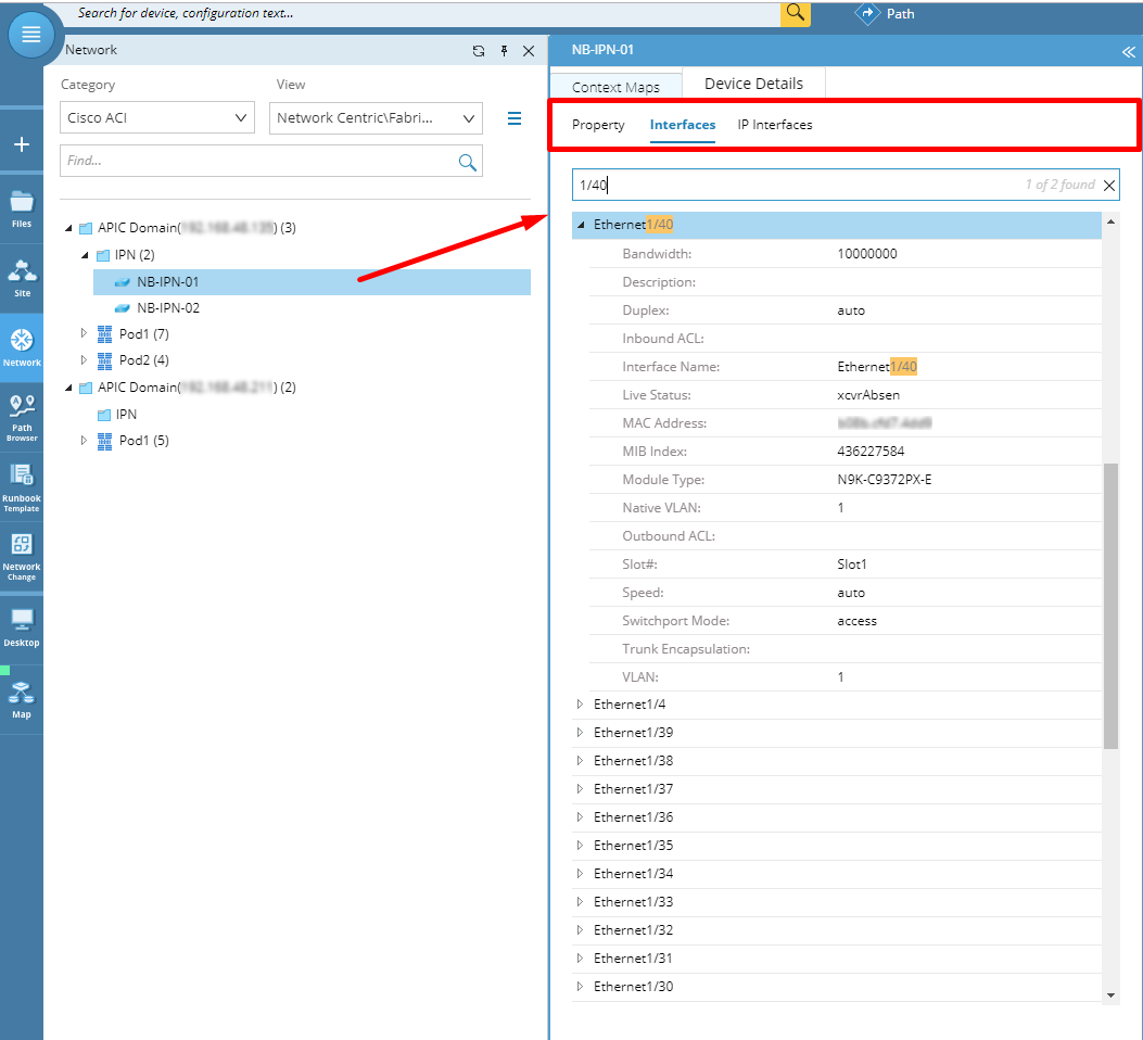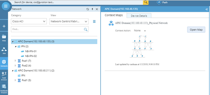 3.Expand the APIC Domain node to view Pod info and IPN info.