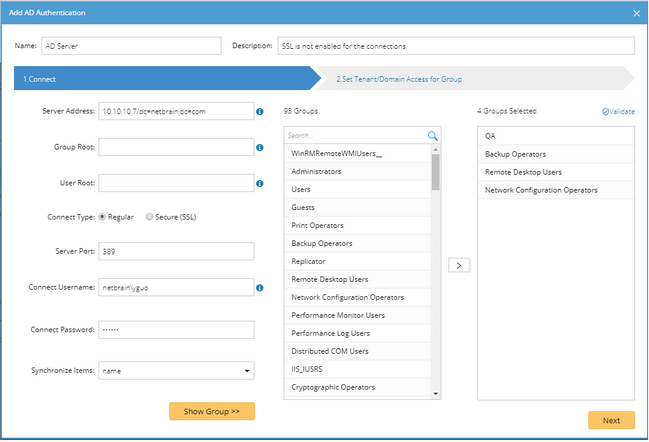 Tip: Click Validate to verify whether the selected groups still exist on the AD server. Click the