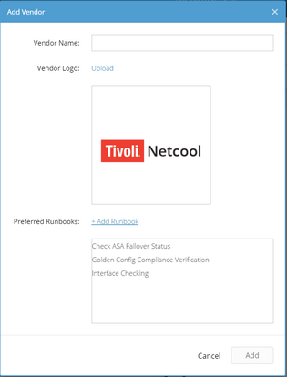 5.Click Add Runbook to add preferred runbooks for the vendor.