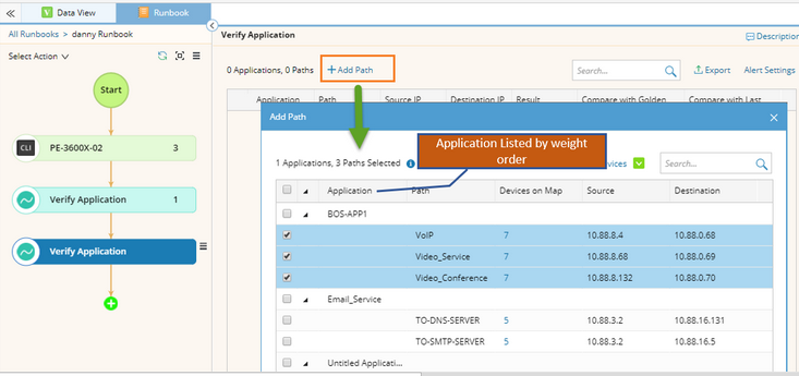 When you select paths to add them to the Verify Application node of a runbook, the applications will be listed and sorted by weight from high to low.