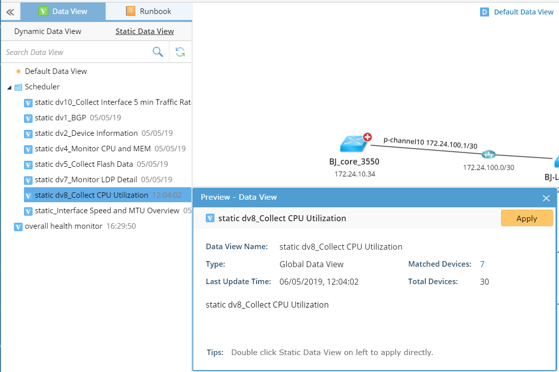 All devices on a map page are displayed in the default data view. You can apply a static data view to decode network design.