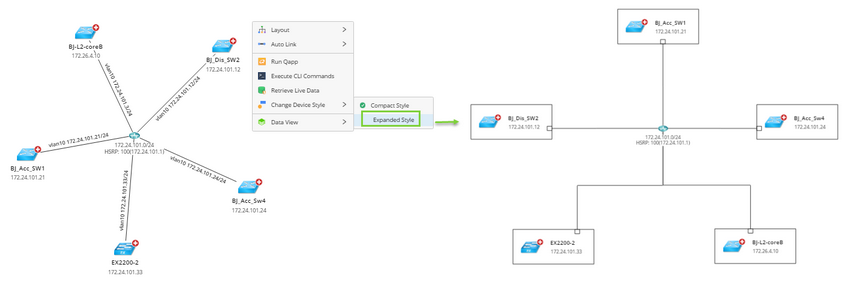 Tip: When you create a map from scratch, the involved devices are displayed in the Compact Style by default.