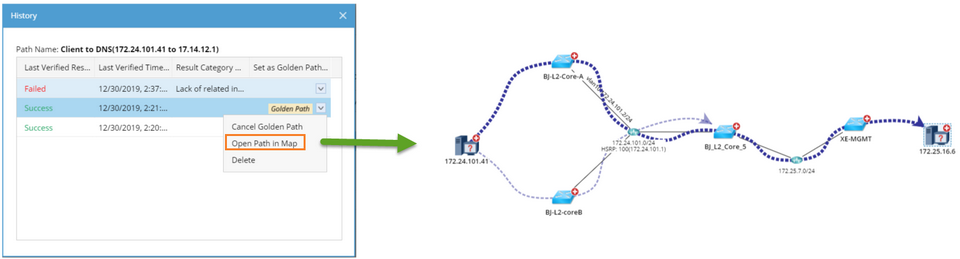 You can compare the current CLI result with historical results and Golden Baseline stored in your NetBrain system to view changes and historical details.