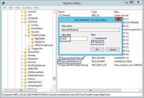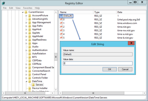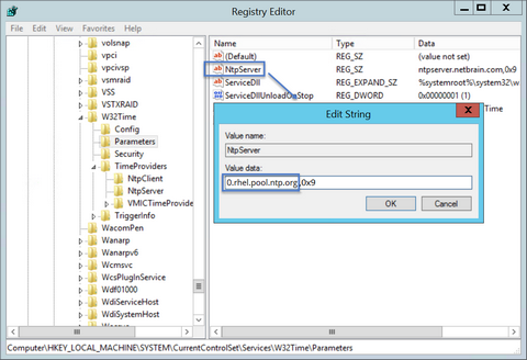 6.In the Registry Editor, set the newly added NTP server FQDN or IP address as the default one.