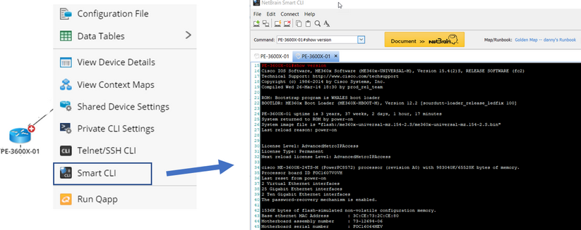 4.Enter CLI commands in the NetBrain Smart CLI window.