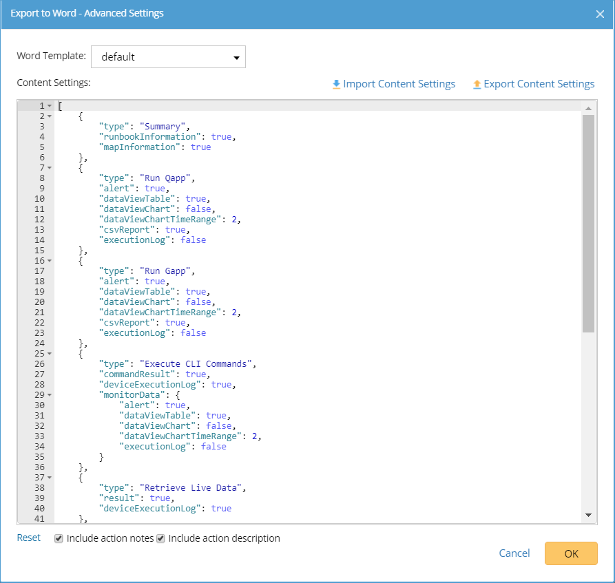 Content Settings determine what contents are included in the exported document. You can customize your document content by modifying the content settings. The parameter values true and false mean whether to export the corresponding content.