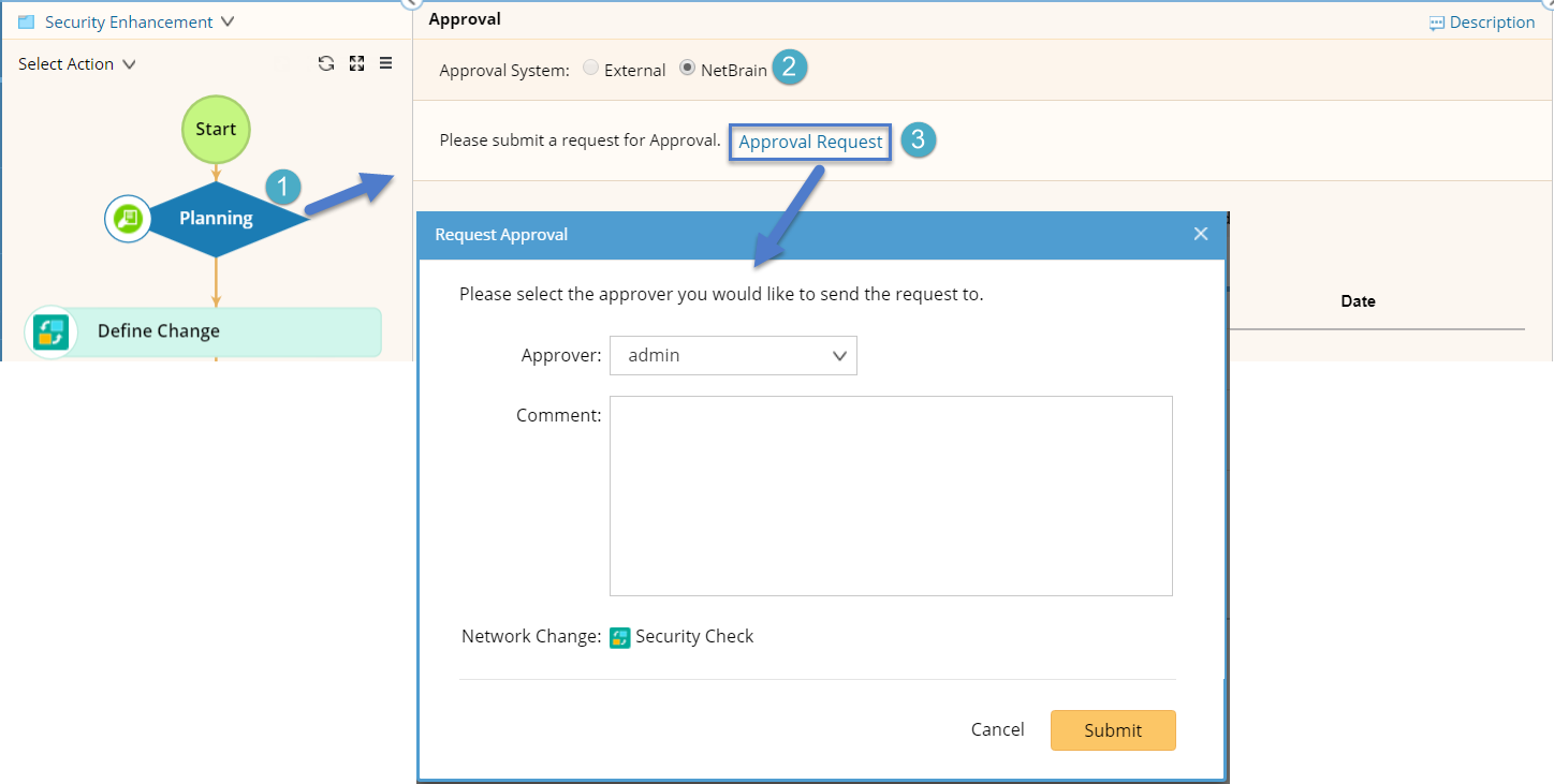 2.In the Approval pane, select NetBrain in the Approval System field.