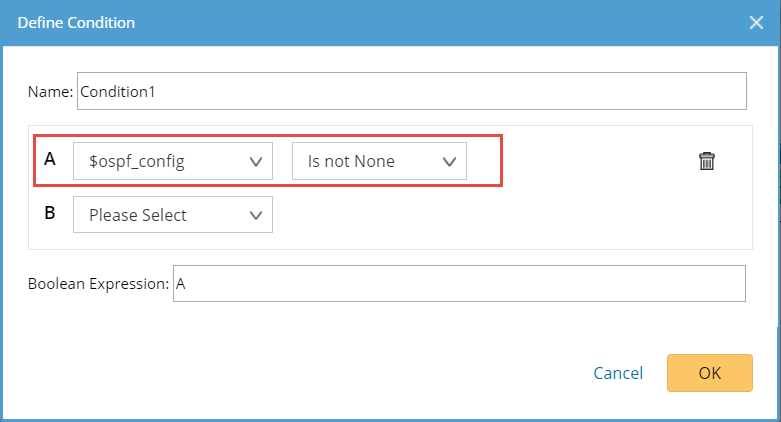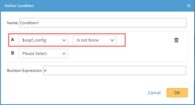 Select $ospf_config in a drop-down list and then select is not None.