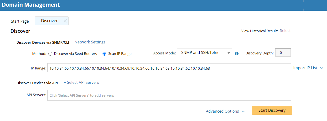 2)On the Discover tab, select Scan IP Range in the Method field.