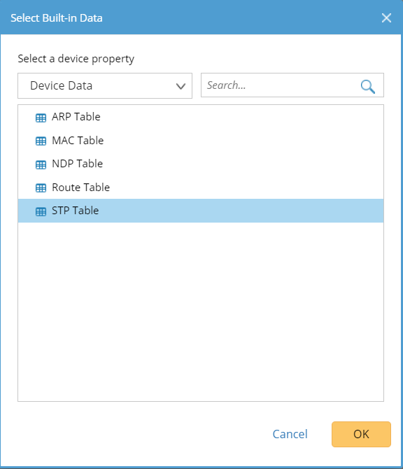 2)Select Device Data from the drop-down list and select STP Table from the available table types. Click OK.