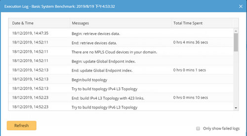 ▪Execution log — records the overall status of all subtasks, such as building topology, recalculating sites.