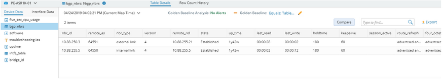 After Applying a Data View Template to a map, you can view not only the last copy of historical data and Golden Baseline, but also the live data analysis. When it doesn't match the Golden Baseline Rule, it will be highlighted in red color to alert users.