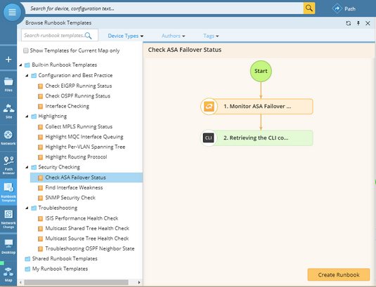 2.In the runbook template tree, select Security Checking > Check ASA Failover Status, and click Create Runbook.