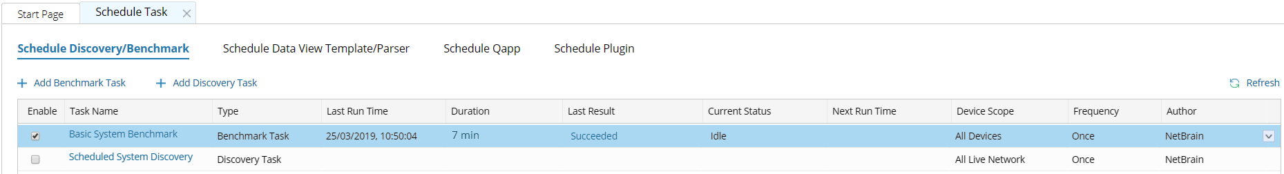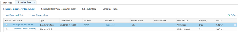 3.On the Schedule Task > Schedule Discovery/Benchmark tab, select the Enable check box for the Basic System Benchmark entry.