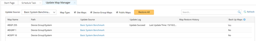 3.On the Update Map Manager tab, all the maps updated through benchmark tasks are listed. You can click a link in the Update Source column to go to the benchmark task.