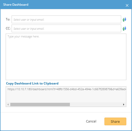 Tip: Click Copy Dashboard Link to Clipboard, and paste the link in any communication tools to share the dashboard with other users directly.