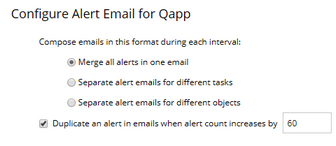 To avoid excessive and distracting email alerts, you can customize advanced settings for email alerts in Domain Management > Advanced Settings > Configure Alert Email for Qapp. See Advanced Settings for more details.
